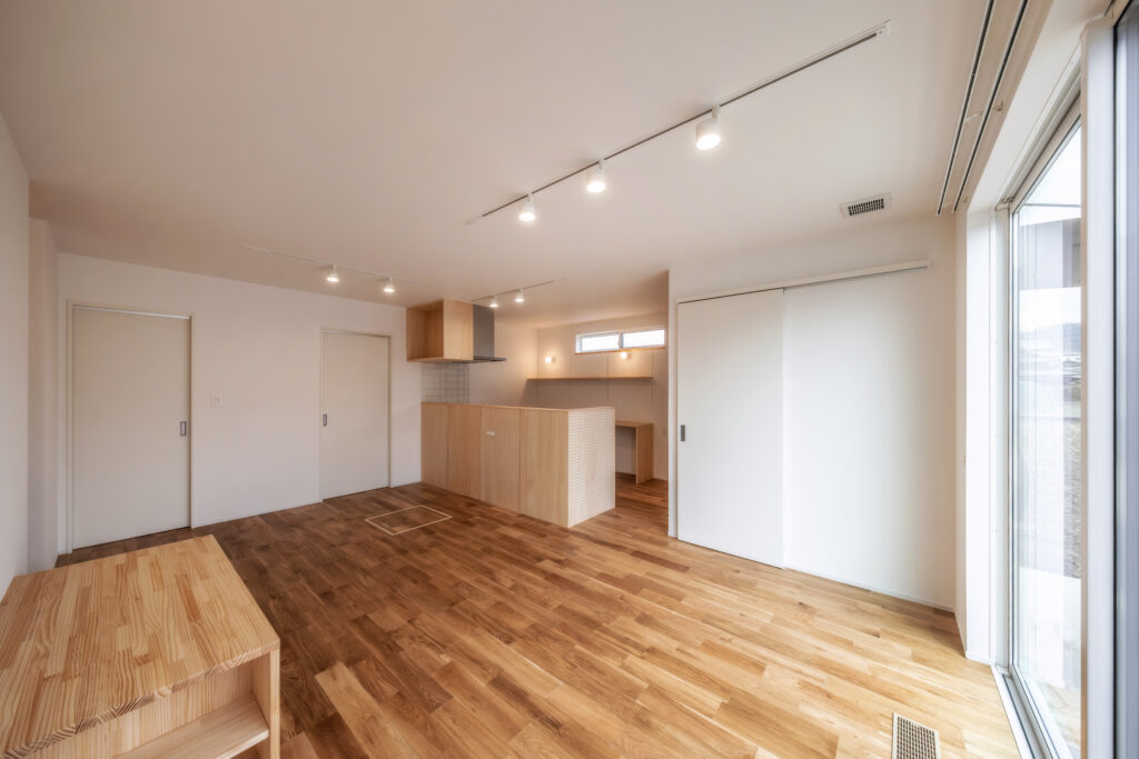 素足で触れたくなる無垢床が広がる、温かみあふれる平屋